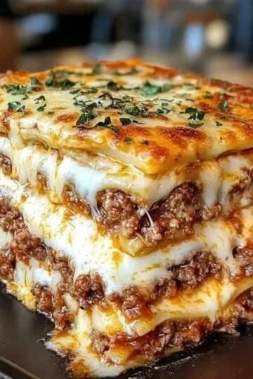 Million Dollar LasagnaIngredients:For the Meat Sauce:1 lb ground beef1 lb Italian sausage1 medium onion, diced3 garlic cloves, minced1 jar (24 oz) marinara sauce1 can (14 oz) diced tomatoes1 tsp Italian seasoningSalt and pepper to tasteFor the Creamy Cheese Layer:2 cups ricotta cheese or cottage cheese1 package (8 oz) cream cheese, softened1/2 cup sour cream1 large […]