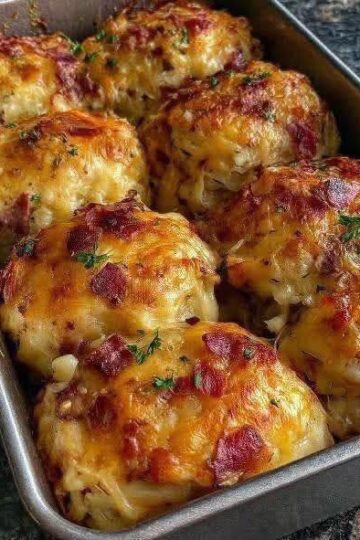 Ingredients 4 large chicken breasts 8 oz cream cheese, softened 1 cup shredded mozzarella (or cheddar) ½ cup cooked, crumbled bacon 2 cloves garlic, minced ½ tsp paprika ½ tsp onion powder Salt & black pepper to taste 1 cup shredded cheddar (for topping) Fresh parsley (optional garnish) Instructions 1️⃣ Prep the Chicken Preheat oven […]
