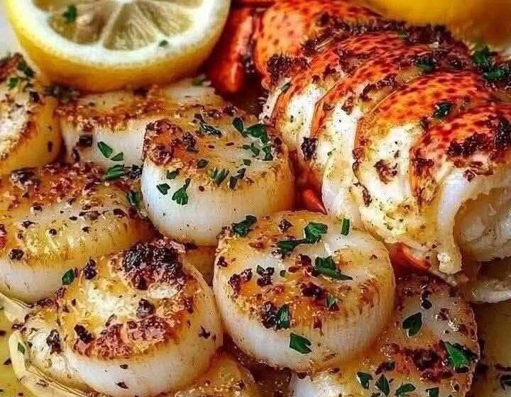 This recipe is designed for a restaurant-quality result at home. The method involves searing the seafood to create a beautiful crust before finishing it in a decadent garlic lemon butter sauce.