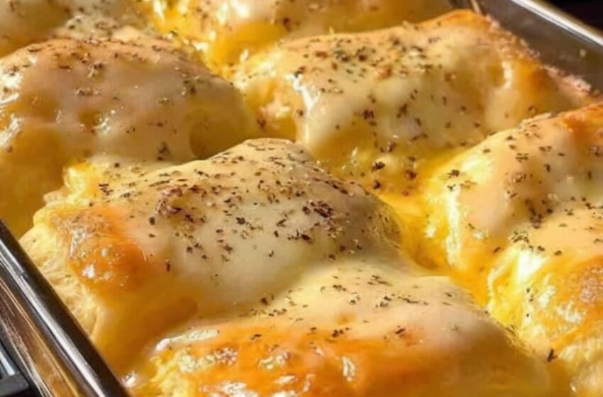 - Place the baking dish in the preheated oven and bake for 25 to 35 minutes, or until the biscuits are golden brown and cooked through. The cheese should be melted and bubbly.