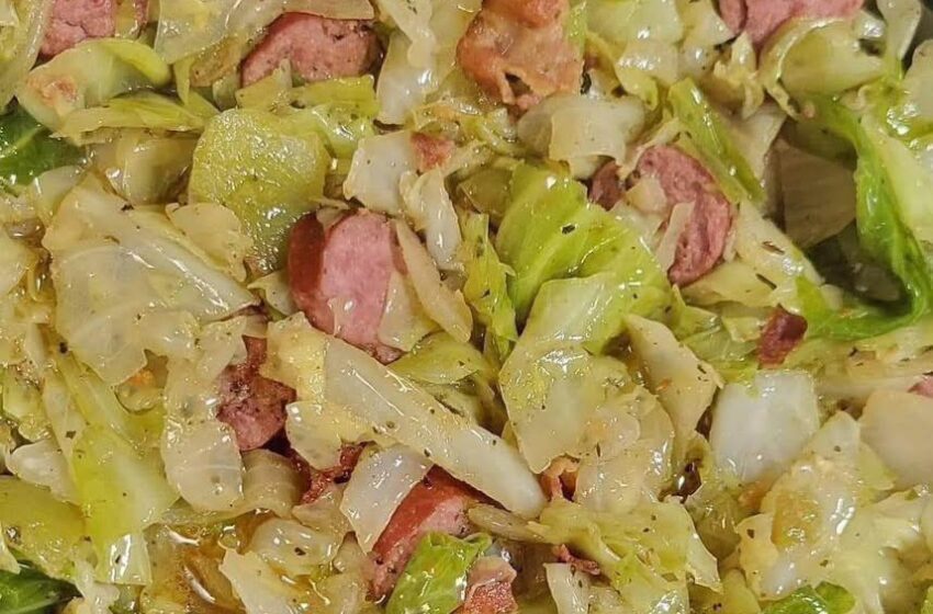 Add the cabbage to these drippings and cook without stirring until it begins to brown, about 3 minutes.