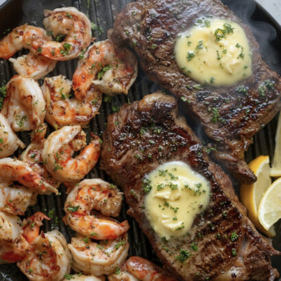 Spoon the melted butter over the steaks, basting them for a further 1–2 minutes on each side to achieve a medium-rare internal temperature of about 130°F/54°C.