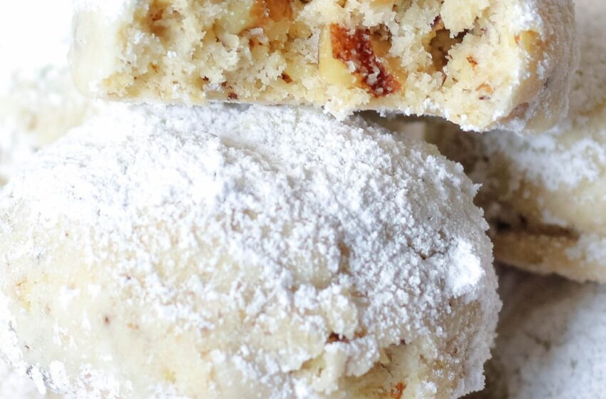 While still warm (after about 5 minutes of cooling), roll cookies in powdered sugar.