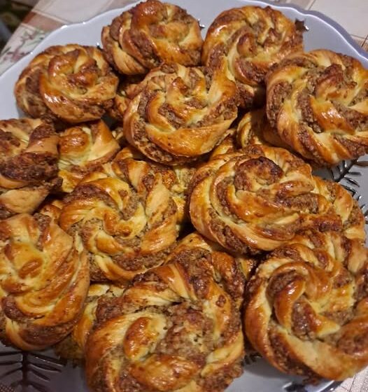 In a small bowl, mix ground nuts, sugar, cinnamon, melted butter, and enough milk to create a thick, spreadable paste.
