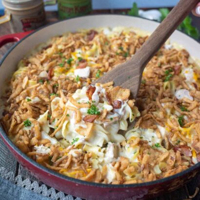 Preheat oven to 375°F (190°C). Bake for 35–40 minutes or until golden brown and a skewer inserted comes out clean. Tent with foil if it browns too quickly.