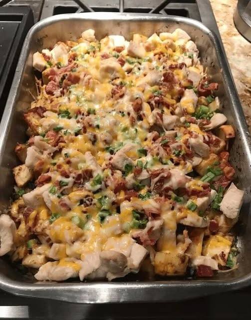 Spread evenly in the bottom of a 9ร13 dish or serving platter.