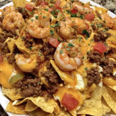 1. Spoon the surf & turf mixture into each pepper boat.