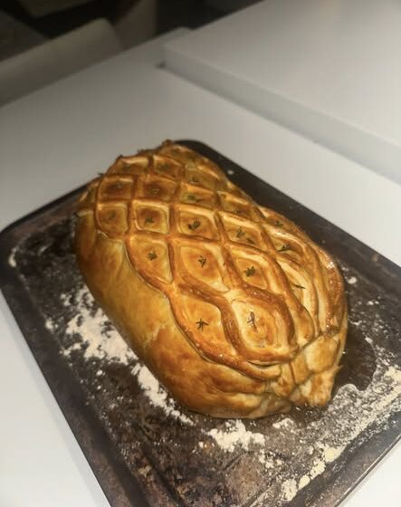 Bake at 425°F (220°C) for 35–40 min (medium-rare).