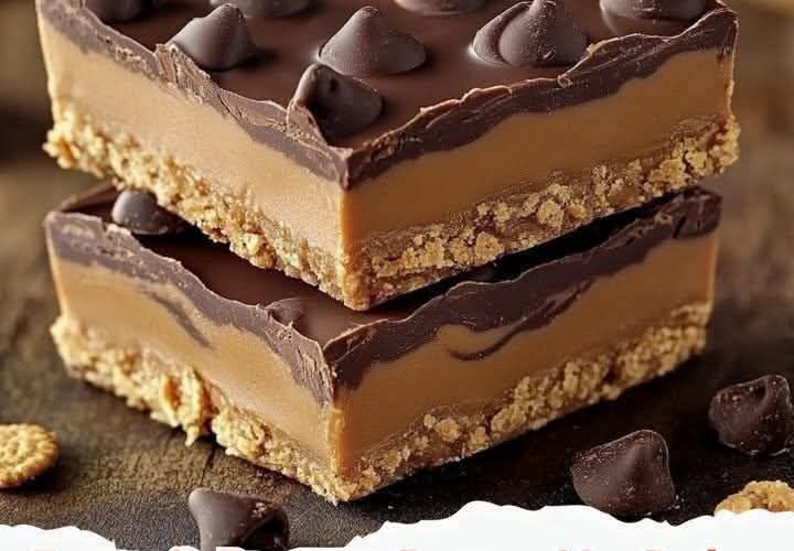 - Pour the chocolate mixture over the peanut butter layer and spread evenly.