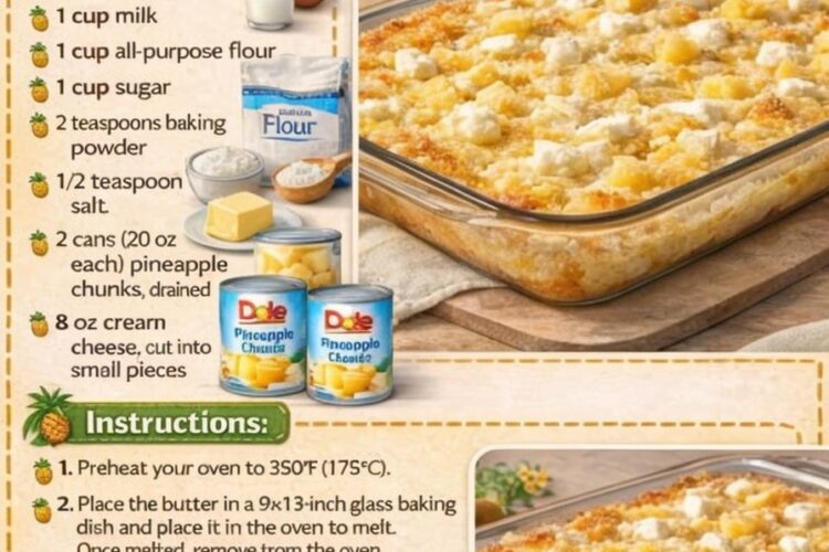 3. **Melted Butter Layer:** Drizzle the 1/2 cup melted butter evenly over the pineapple mixture in the baking dish. Don’t stir!