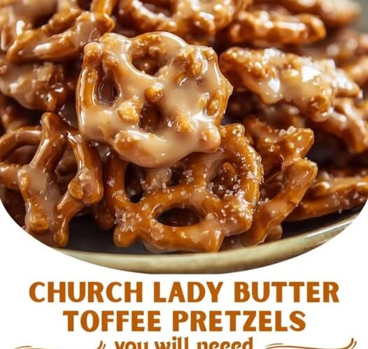Quickly pour the hot toffee evenly over the pretzels. Use a spatula to fold and coat every pretzel thoroughly.