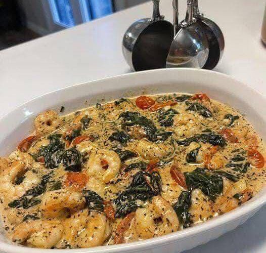 This dish features succulent shrimp in a rich, flavorful sauce made with garlic, butter, cream, and Parmesan, with fresh spinach adding color and nutrients. Serve it over pasta, rice, or with crusty bread to soak up every drop of the sauce.