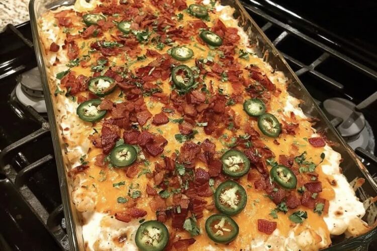 Creamy chicken bake with bacon + cheddar + jalapeños
