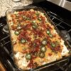 In a mixing bowl, combine ricotta cheese, cream cheese, sour cream, egg, Parmesan cheese, and 1 cup of mozzarella