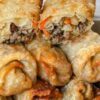 · Place a log of filling (about ½ cup) along the long edge of each strip, shaping it into an even cylinder.