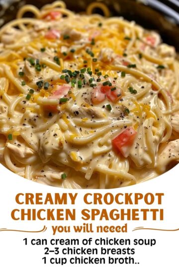 🍝🐔 Creamy Crockpot Chicken Spaghetti – Easy, Cheesy & Weeknight Perfect