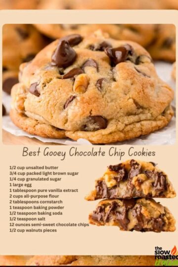Ingredients: 2 cups all-purpose flour 2 teaspoons cornstarch 1/2 teaspoon baking soda 1/2 teaspoon salt 3/4 cup cold unsalted butter, cubed 1/2 cup granulated sugar 3/4 cup brown sugar, packed 1 large egg 1 tablespoon vanilla extract 1 1/2 cups chocolate chips 1/2 cup chopped walnuts (optional) Directions: Preheat oven to 400°F (205°C). Line a […]