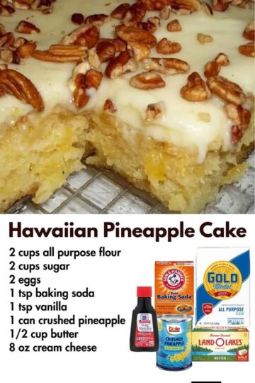 Ingredients: CAKE 2 cups all-purpose flour 2 cups granulated sugar 2 large eggs 1 teaspoon baking soda 1 teaspoon vanilla extract Pinch of salt 1 can (20 oz) crushed pineapple, undrained (in its own juice, not syrup) 1 cup chopped nuts (optional) CREAM CHEESE FROSTING 1/2 cup butter (1 stick) 8 oz cream cheese, softened […]