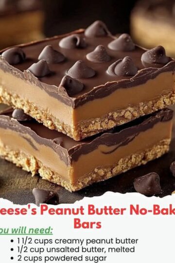 Ingredients: FOR THE PEANUT BUTTER LAYER 1 ½ cups creamy peanut butter ½ cup unsalted butter, melted 2 cups powdered sugar FOR THE CHOCOLATE TOPPING 1 ½ cups milk chocolate chips (or semi-sweet) ¼ cup creamy peanut butter Instructions: Line an 8×8-inch baking dish with parchment paper, leaving overhang for easy removal. In a medium […]