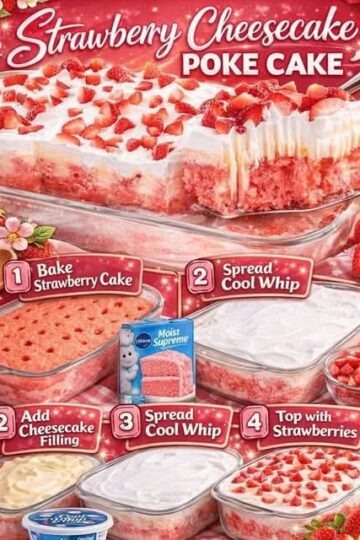 Ingredients: For the Cake 1 box (15.25 oz) strawberry cake mix ½ cup vegetable oil 3 large eggs For the Cheesecake Filling 1 box (7 oz) cheesecake instant pudding mix 3½ cups cold whole milk For the Topping 8 oz whipped topping, thawed 1 cup fresh strawberries, chopped Instructions: Bake the Cake Prepare the strawberry […]