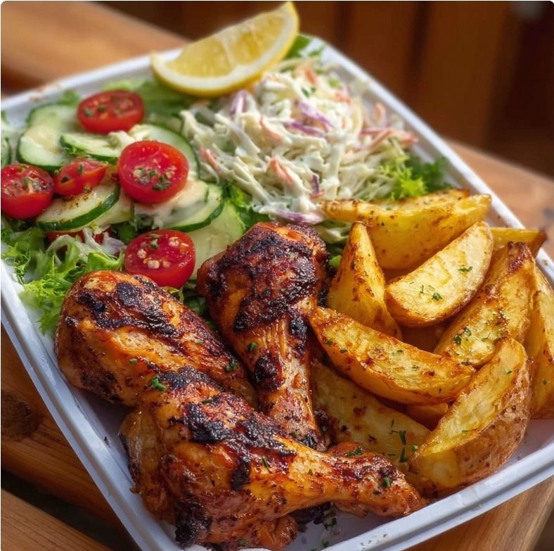 Grilled Chicken Drumsticks with Crispy Potato Wedges and Fresh Salad Introduction Grilled chicken with potato wedges and salad is the perfect weeknight dinner — hearty, flavorful, and balanced. Smoky, juicy chicken drumsticks meet golden-crisp potato wedges and a refreshing garden salad for a complete plate. A bright marinade of garlic, lemon, and oregano infuses the chicken […]