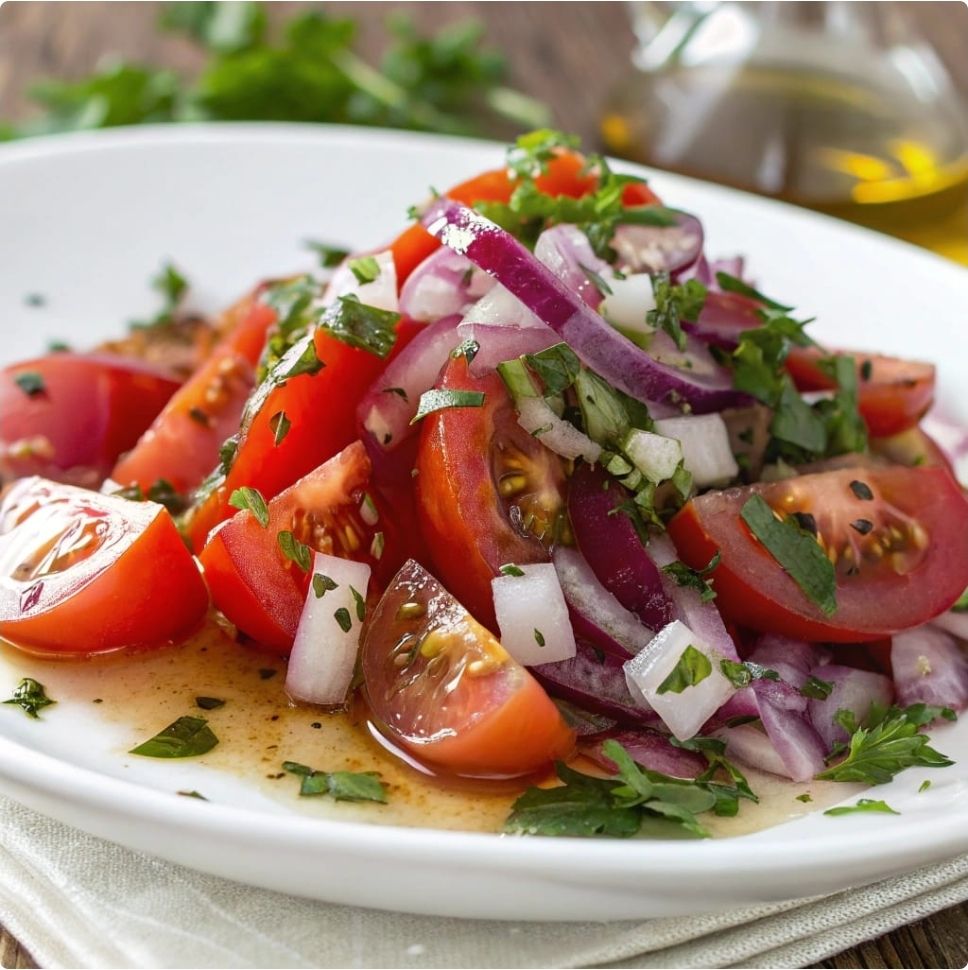 Fresh Tomato and Onion Salad Ingredients For the Salad: 4–5 ripe tomatoes (Roma or vine tomatoes work best), cut into wedges 1 small red onion, thinly sliced 1/2 small white onion, diced (optional, for extra crunch) 2 tablespoons fresh parsley, finely chopped Salt and black pepper to taste For the Vinaigrette: 3 tablespoons extra virgin […]