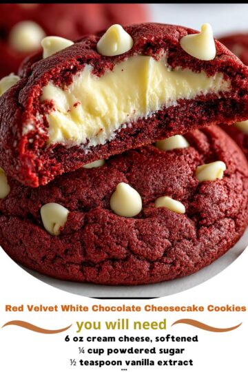 ❤️🍪 Red Velvet White Chocolate Cheesecake Cookies Yield: ~18–20 cookiesTime: ~35 minutes Ingredients Cheesecake Filling 4 oz cream cheese, softened ¼ cup powdered sugar ½ tsp vanilla extract Cookie Dough ½ cup unsalted butter, softened ¾ cup granulated sugar ¼ cup brown sugar 1 large egg 1 tbsp milk 1½ tsp vanilla extract 1 tsp […]