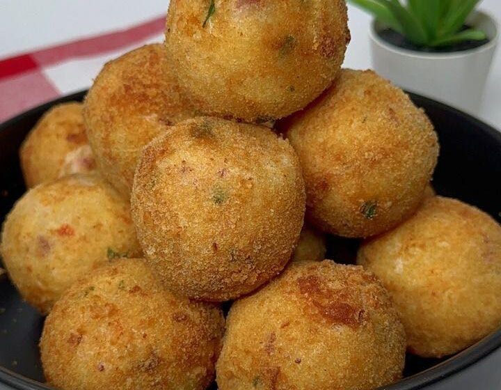 Heat oil in a deep pan and fry yam balls on medium heat until golden brown.